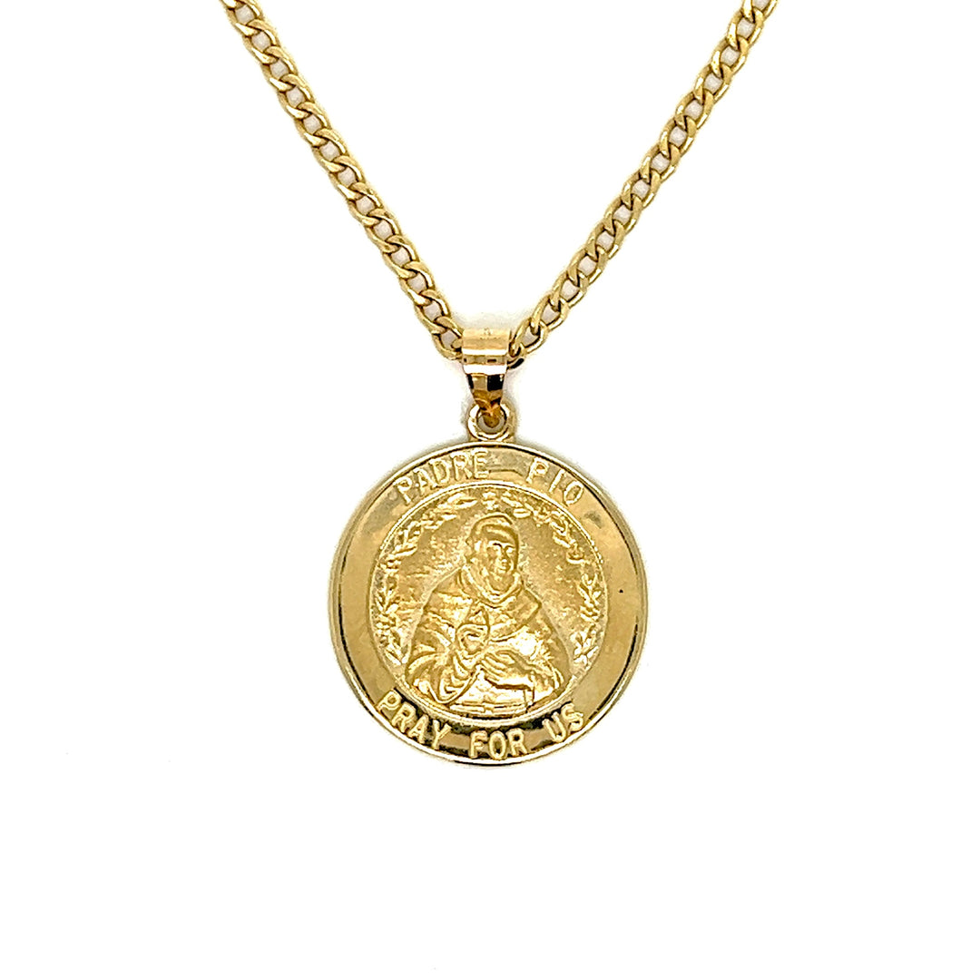 This beautiful 14kt gold Padre Pio medallion comes with a sleek 2MM chain, offering an affordable and elegant set. It's perfect for everyday wear or special occasions. A meaningful piece for those seeking faith-inspired jewelry.
