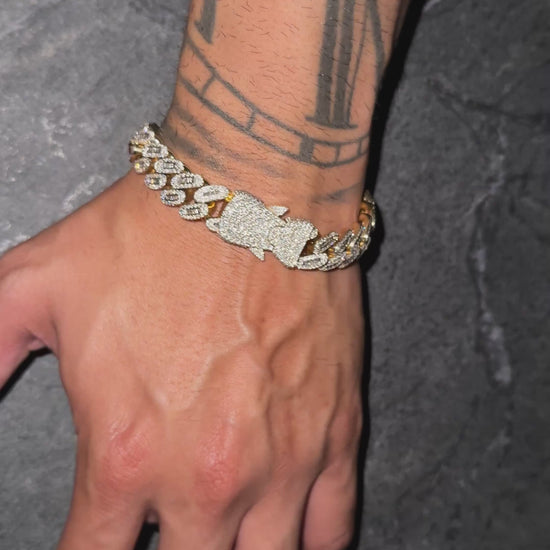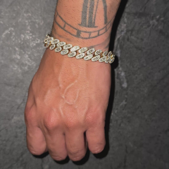 Diamond Baguette and Round Cuban Bracelet — the definition of bold sophistication. Crafted from solid 10K Yellow Gold and iced out with hand-set round and baguette diamonds for maximum brilliance. The signature crown-lock clasp adds a royal touch, securing a look that’s pure luxury. Meticulously polished for a mirror-like shine and built to last.