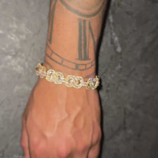 The Diamond Baguette Link Bracelet brings luxury and craftsmanship together in a bold, timeless design. Crafted from solid 10K Yellow Gold and flooded with 8.50 carats of hand-set baguette and round diamonds, each interlocking link captures light from every angle. Finished with a standard box lock for security and a flawless high-polish shine, this piece delivers a look that stands out with effortless sophistication.