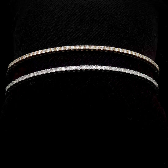 Natural diamond flexible tennis bangle, perfectly sized, ultra-durable, and designed for effortless stacking and everyday wear.