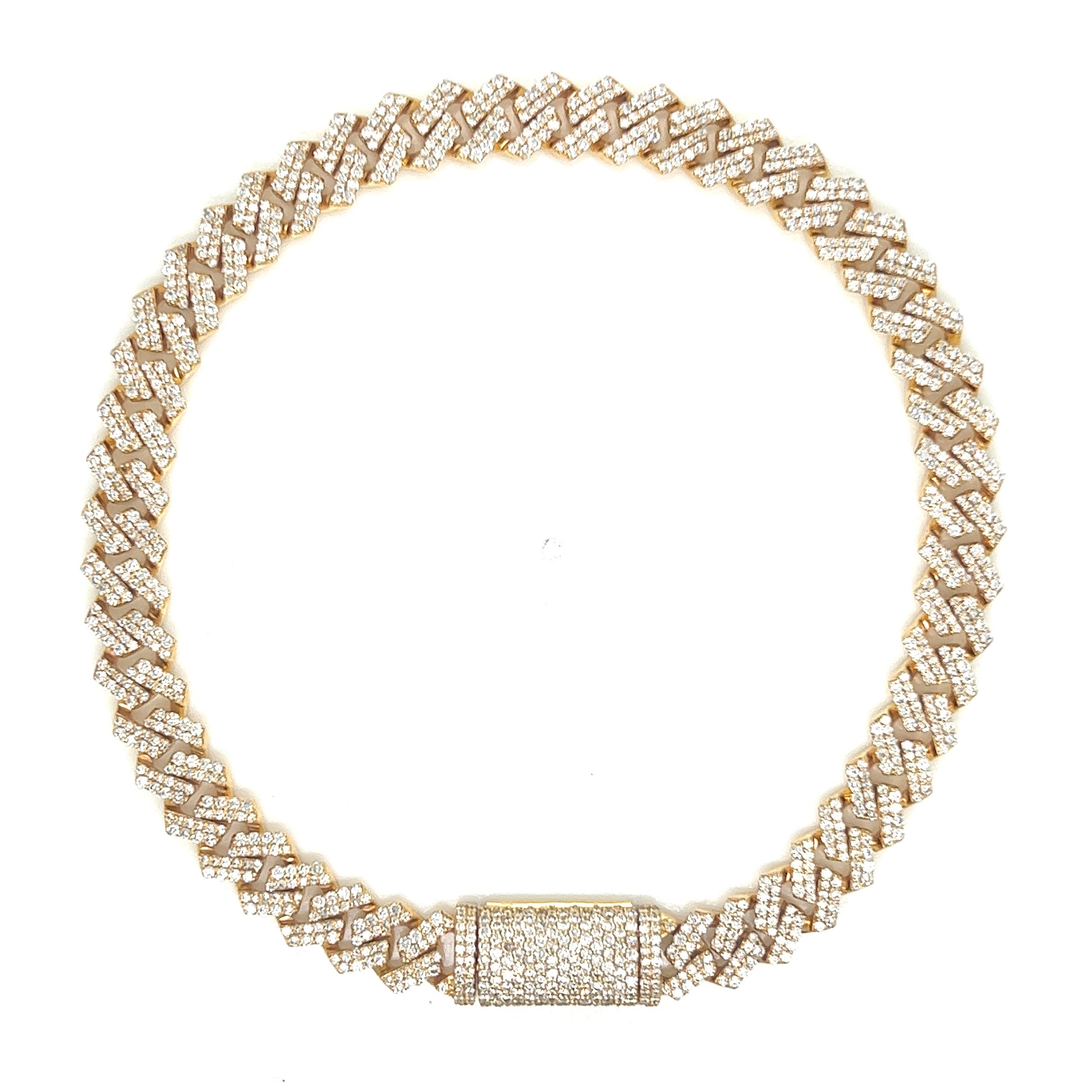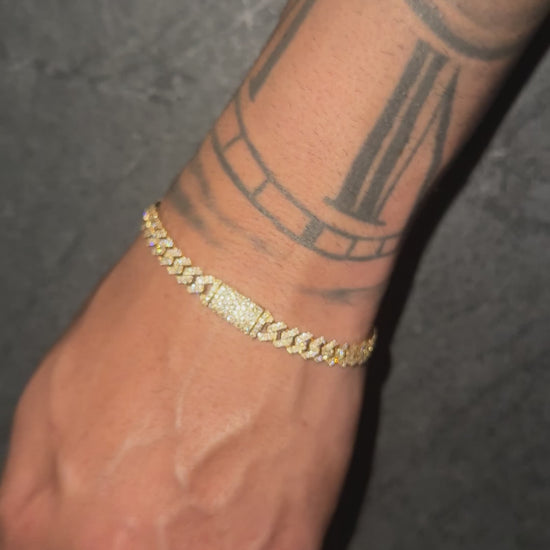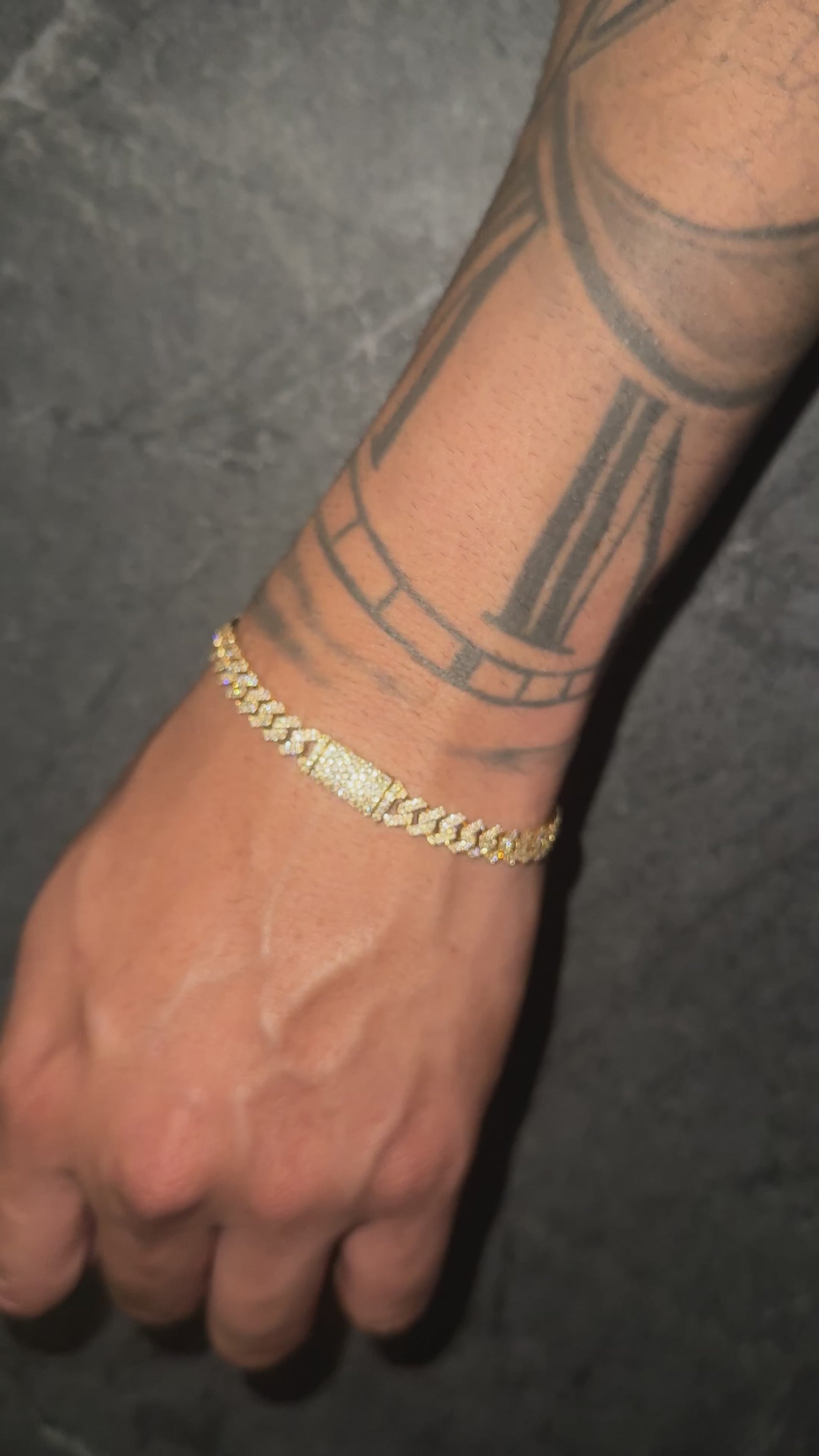 This incredibly detailed Cuban bracelet is finely made with VS/SI clarity diamonds and beautiful yellow gold.