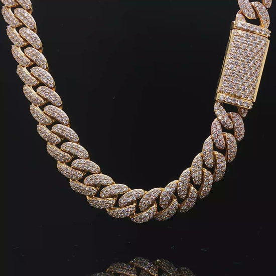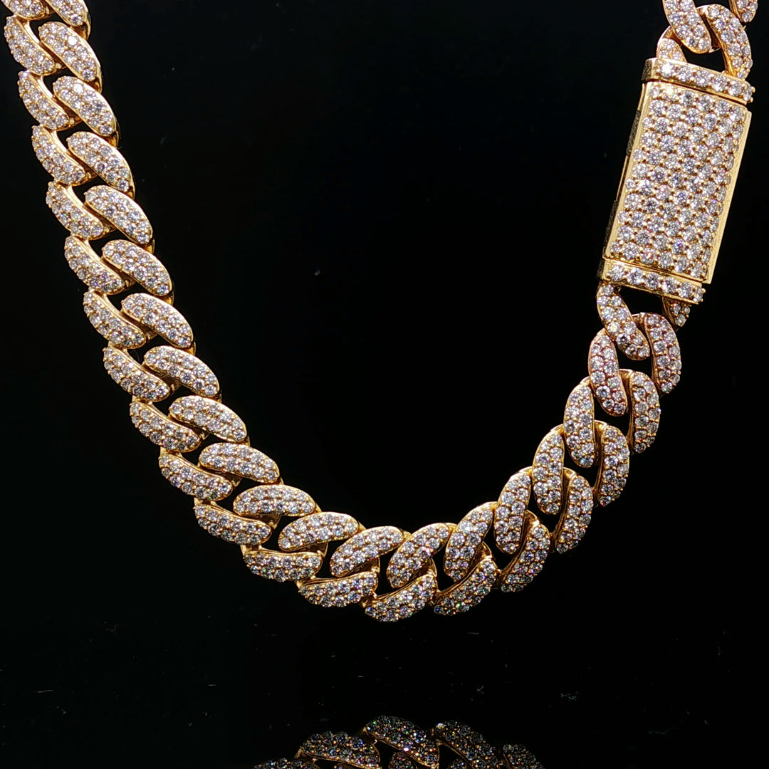 Bold, clean, and built to shine—this 10MM Cuban link chain is fully set with lab diamonds, delivering maximum brilliance without compromising that classic heavyweight look. Each link is flooded with precision-set stones, creating a seamless wall of shine from end to end.