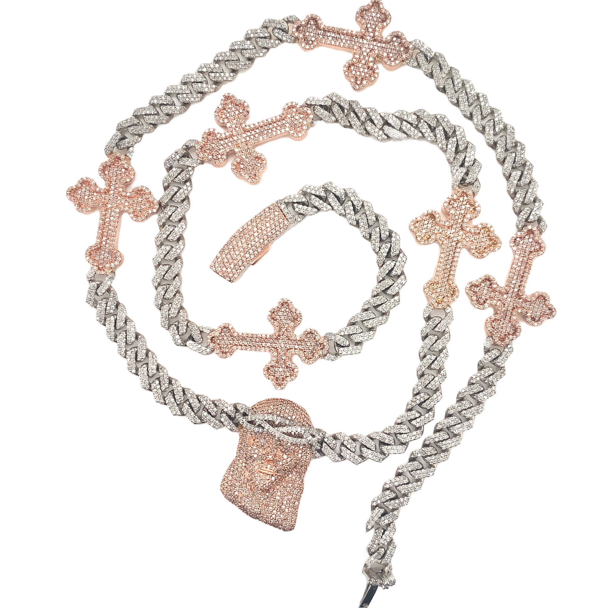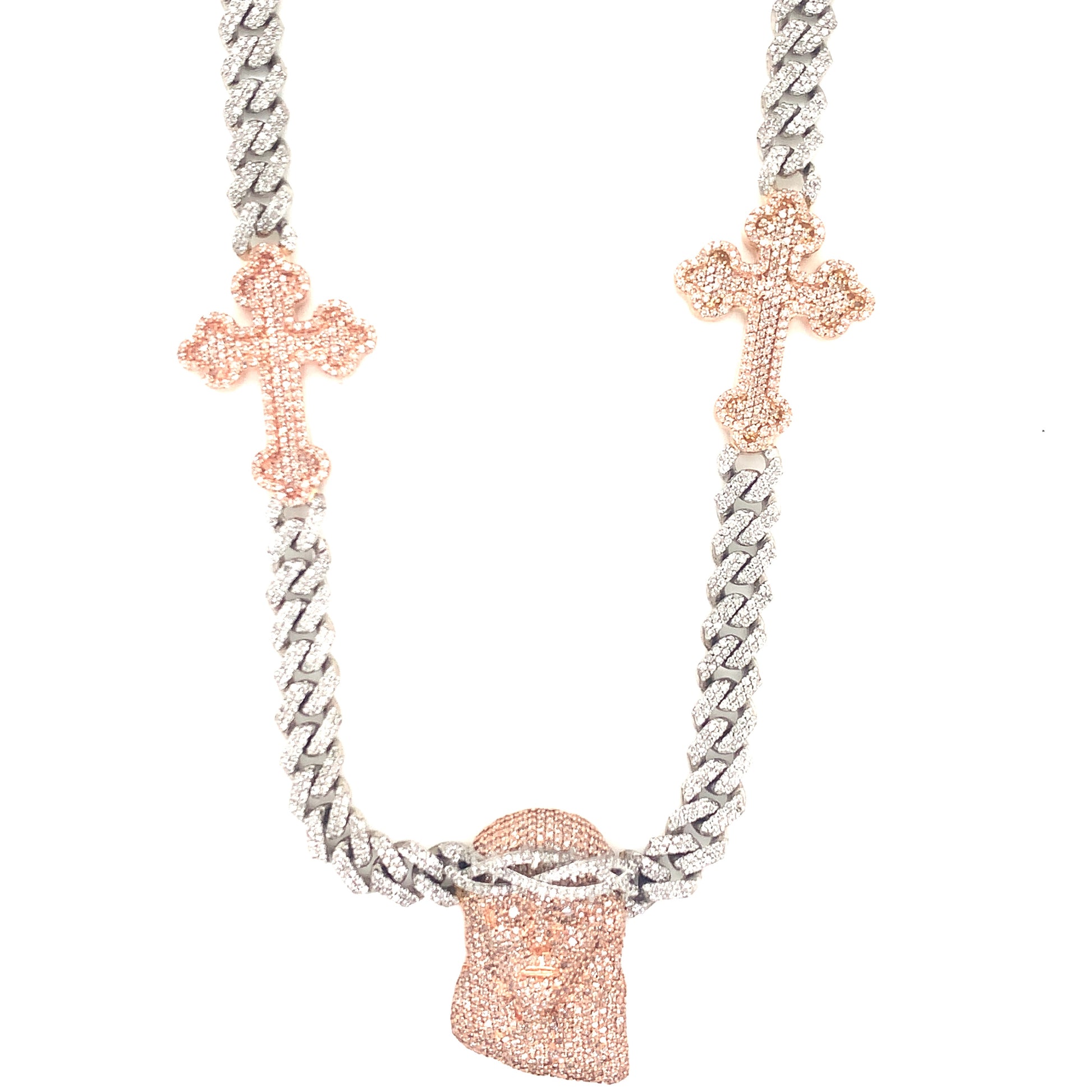 • 6MM Diamond Studded Jesus & Crosses Chain in 14K Gold