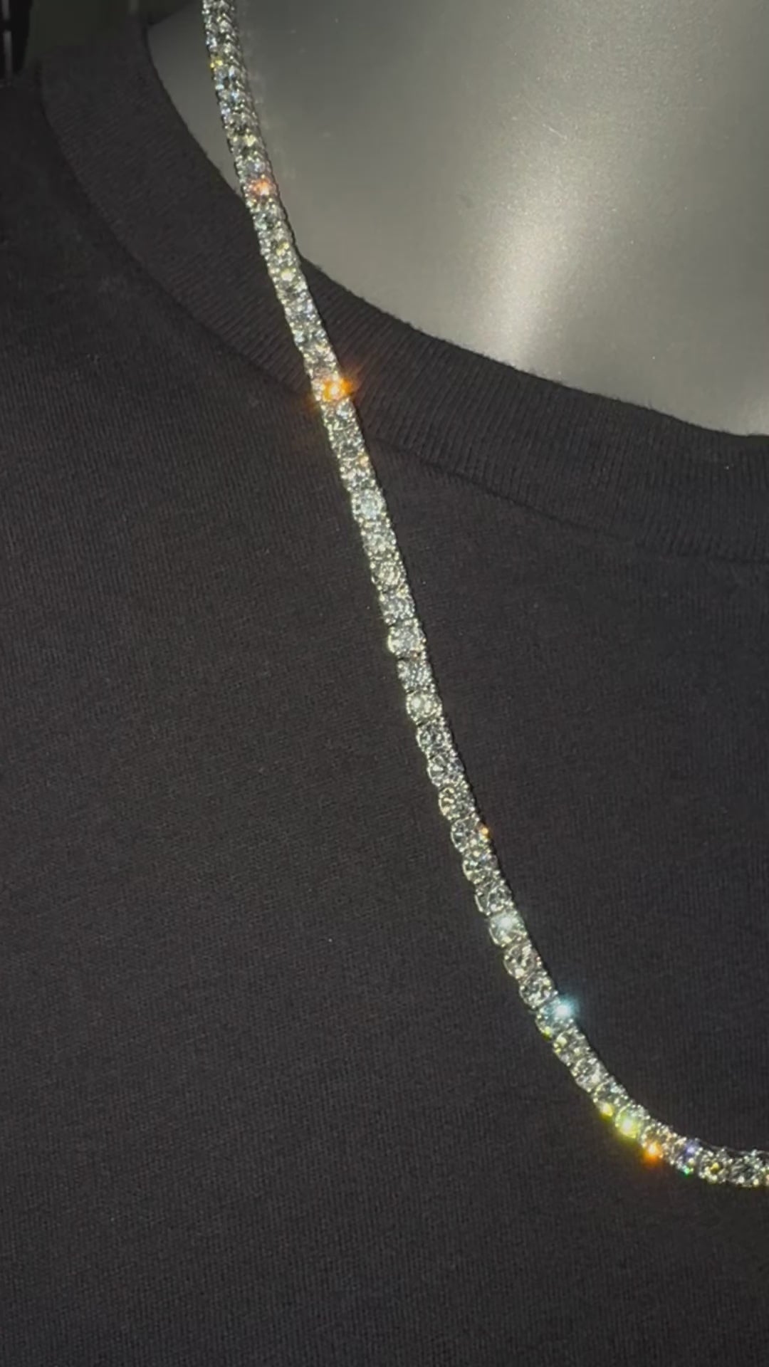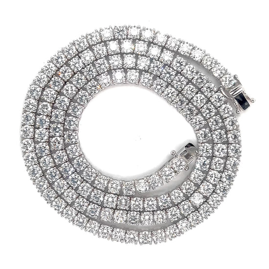 Discover sophistication with our stunning 20pt Lab Diamond Tennis Chain. Crafted in 14KT gold, this exquisite piece features 20 pointer diamonds, totaling over an impressive 30ct, with an option to choose between VS natural diamonds and VVS lab diamonds.