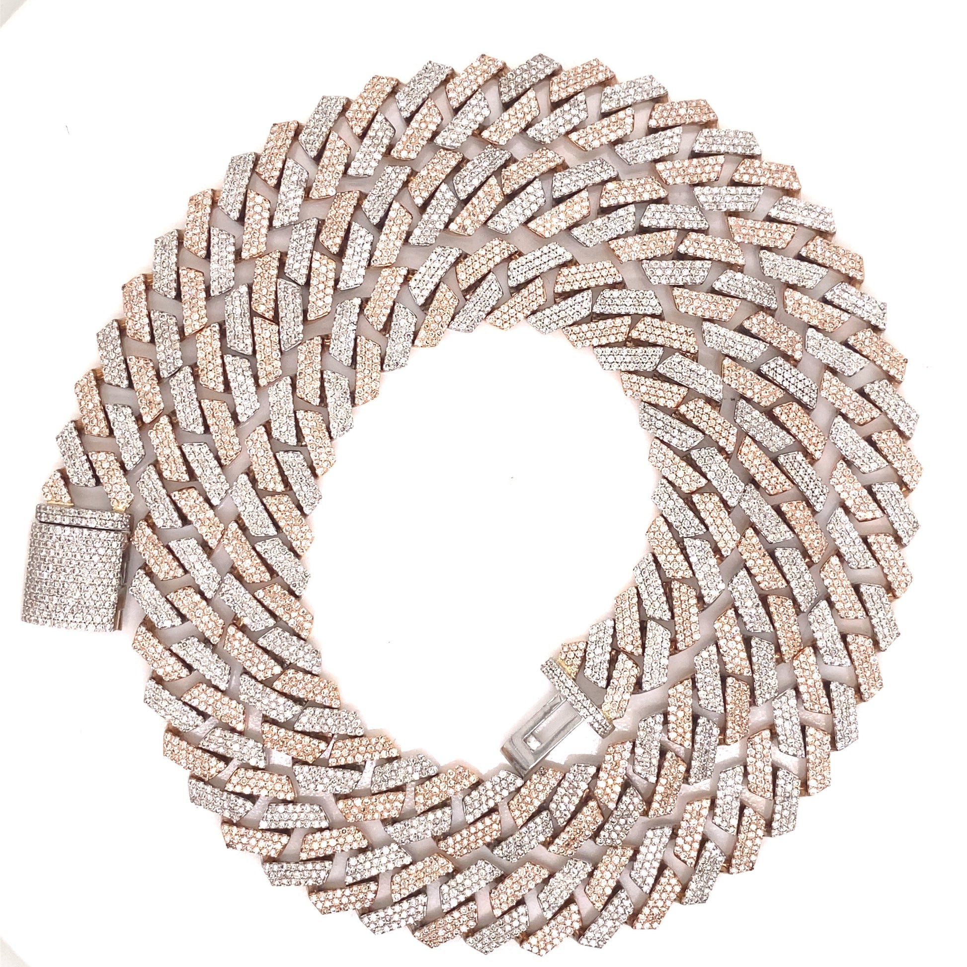 - Exquisite 10MM Two-Tone Rose and White Diamond Cuban Chain
