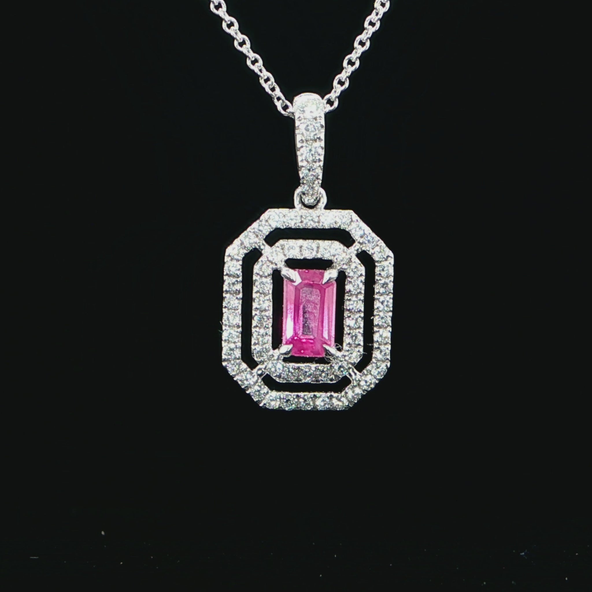 Elevate your jewelry collection with our exclusive RUBY AND DIAMOND HALO NECKLACE. This stunning piece features a sparkling halo of diamonds surrounding a radiant ruby, creating a glamorous and sophisticated look. Perfect for adding a touch of luxury to any outfit.