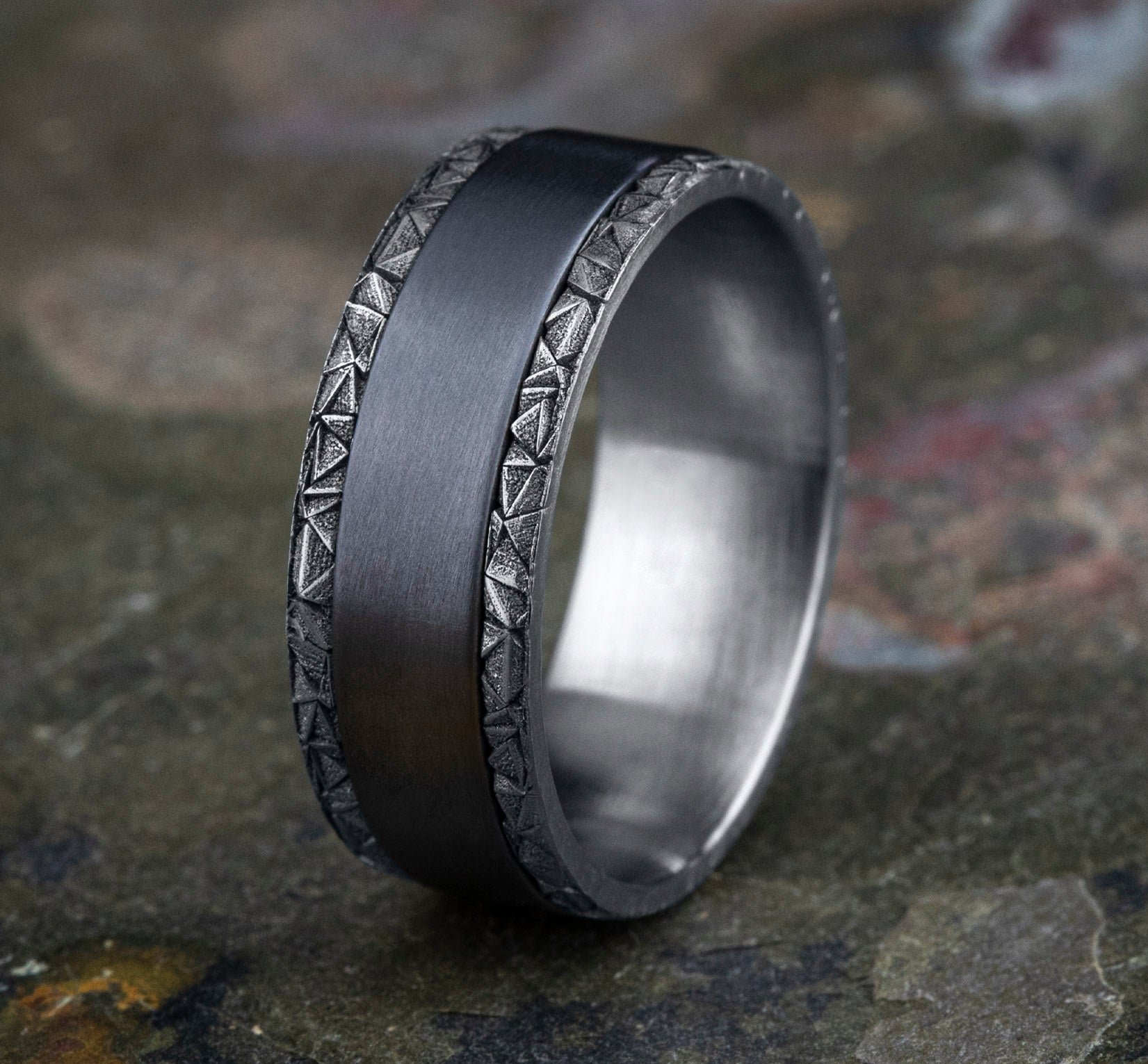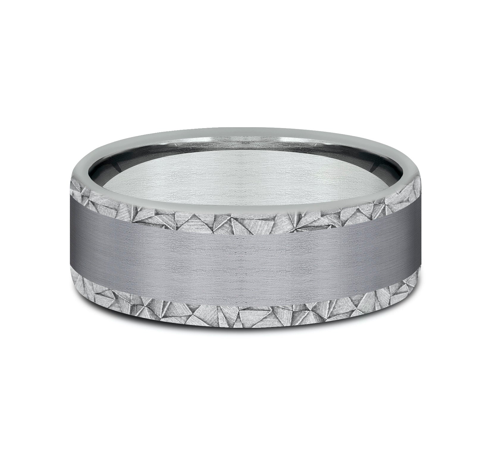 8mm, Comfort fit 14K White Gold and Grey Tantalum Satin center, kaleidoscope patterned edges