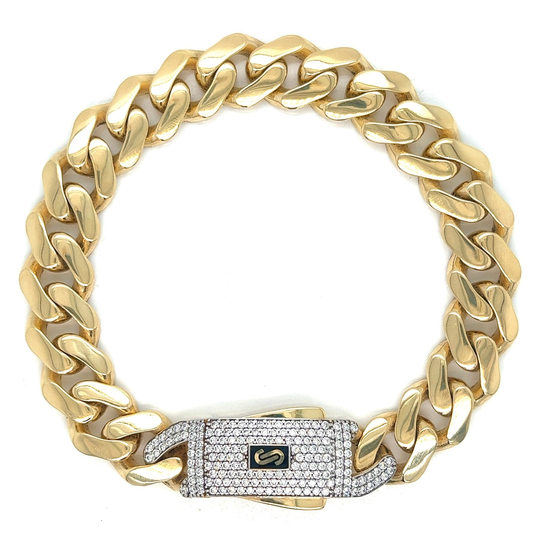 Distinguished and hand-finished with solid 10K gold, this diamond miami cuban link bracelet is a must-have piece for any diamond jewelry collector. Finely detailed with VS clarity diamonds, this bracelet displays timeless beauty and authentic craftsmanship.