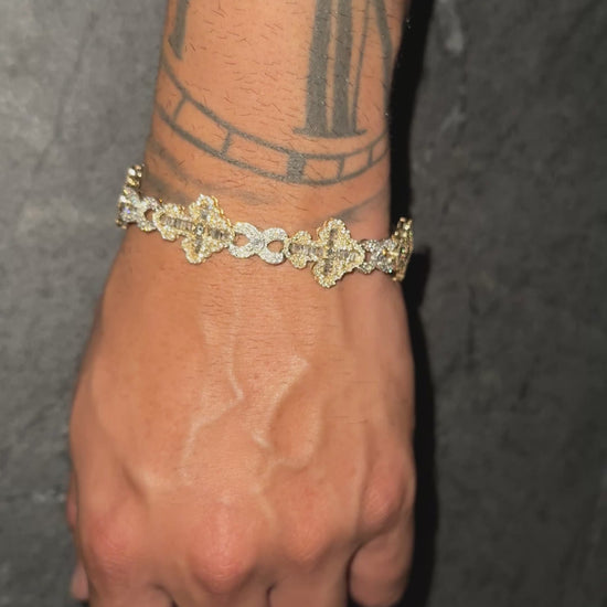 The Diamond Cross & Infinity Link Bracelet blends faith and luxury in one timeless design. Crafted from solid 10K Yellow Gold and hand-set with round diamonds, each cross and infinity link shines with flawless brilliance. Polished to perfection and secured with a standard box lock, this bracelet is a symbol of strength, faith, and everlasting style.
