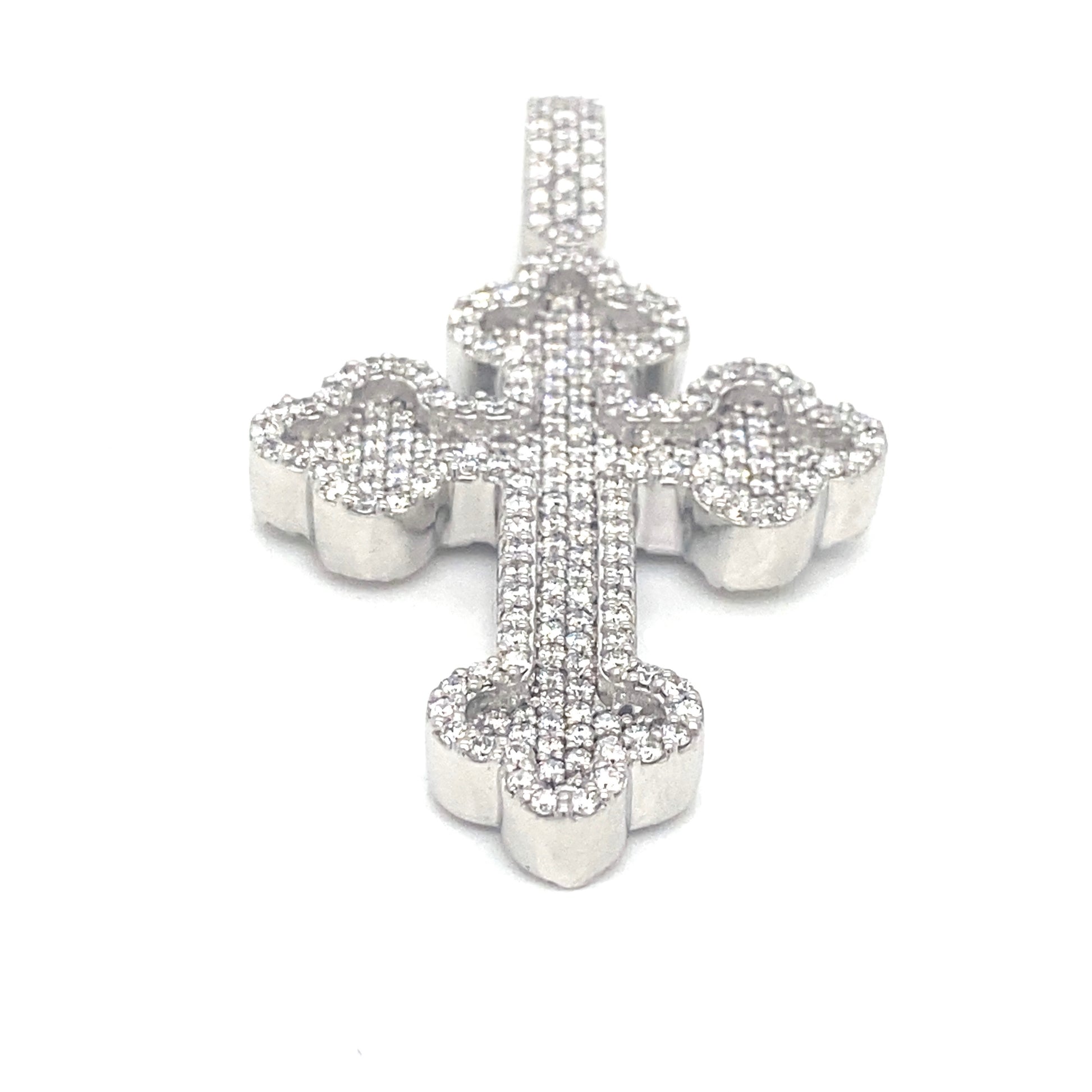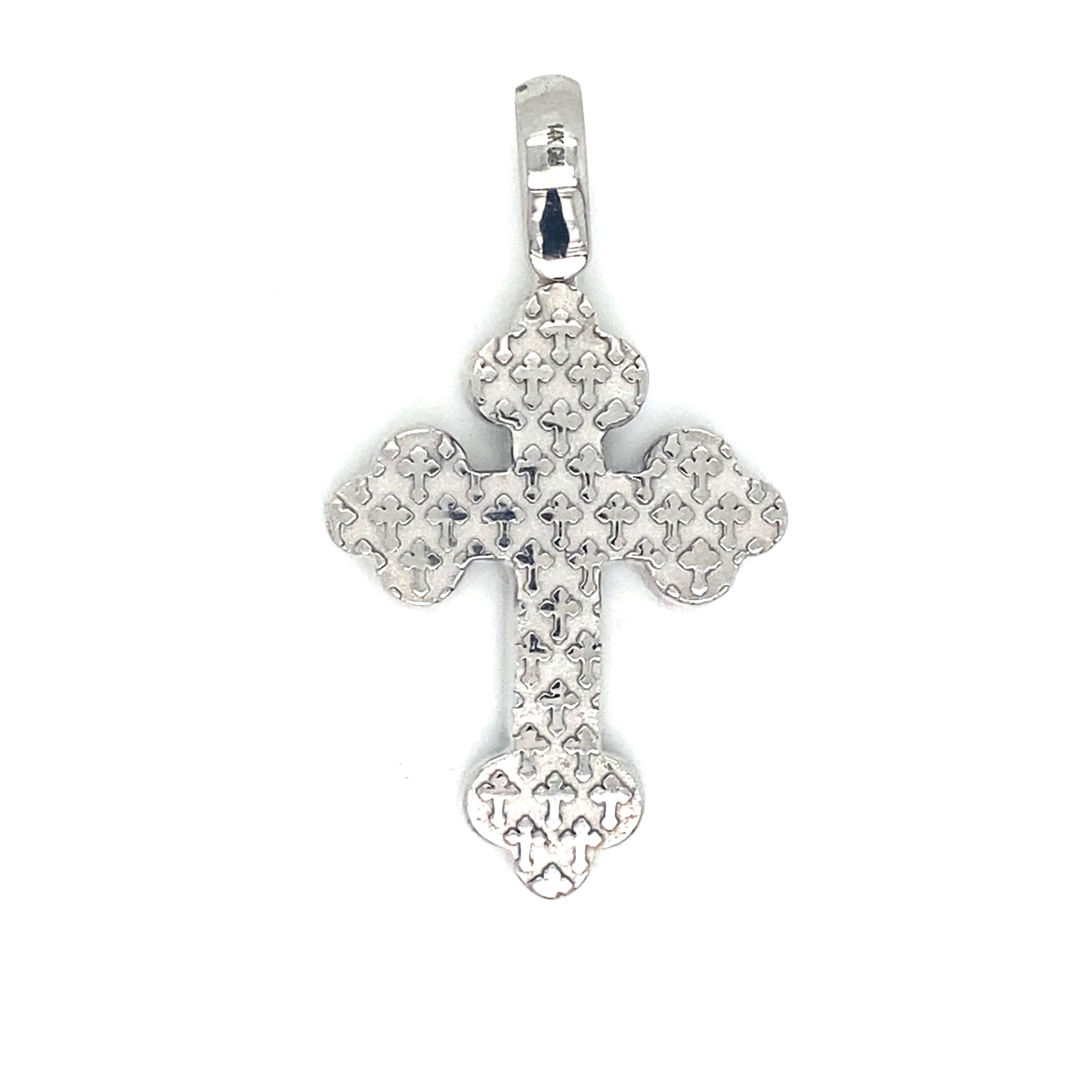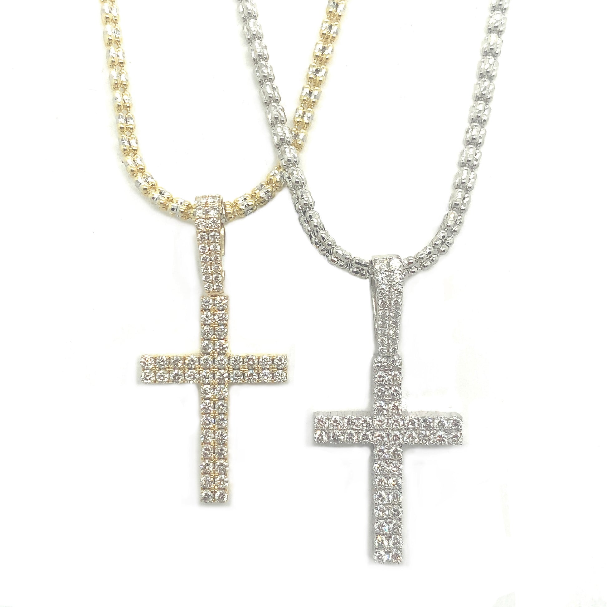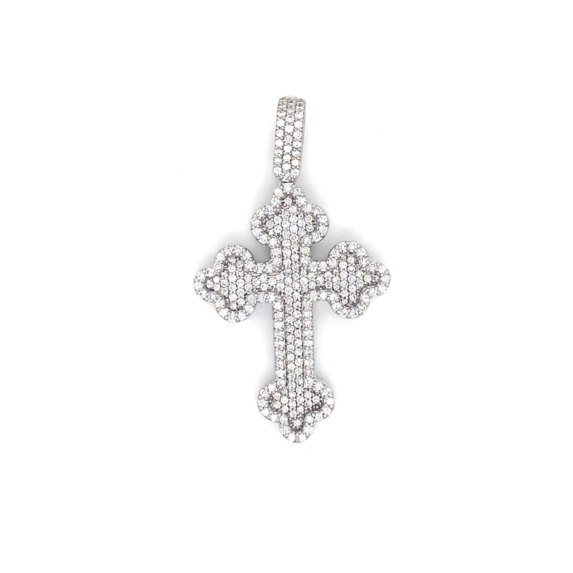 This neo-gothic styled cross is a beauty to own with its intricate design and material. Flooded with VS clarity diamonds and white gold, take this pendant for a sturdy ice look.