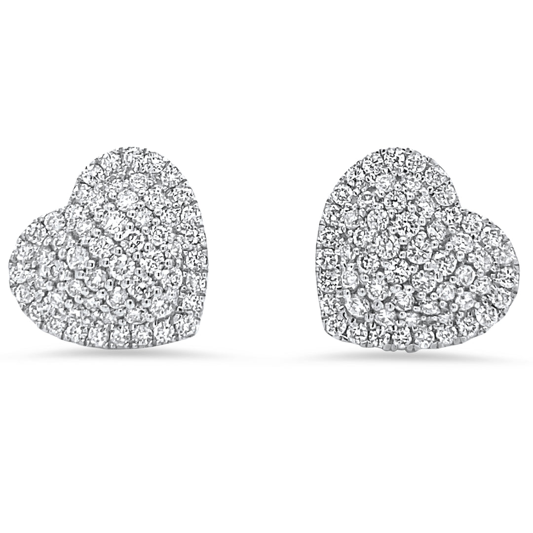 Gorgeous and lovely, these heart-shaped diamond earrings are handcrafted in solid 14K gold. Beautifully detailed, these heart earrings have 0.75 CTW in diamonds.