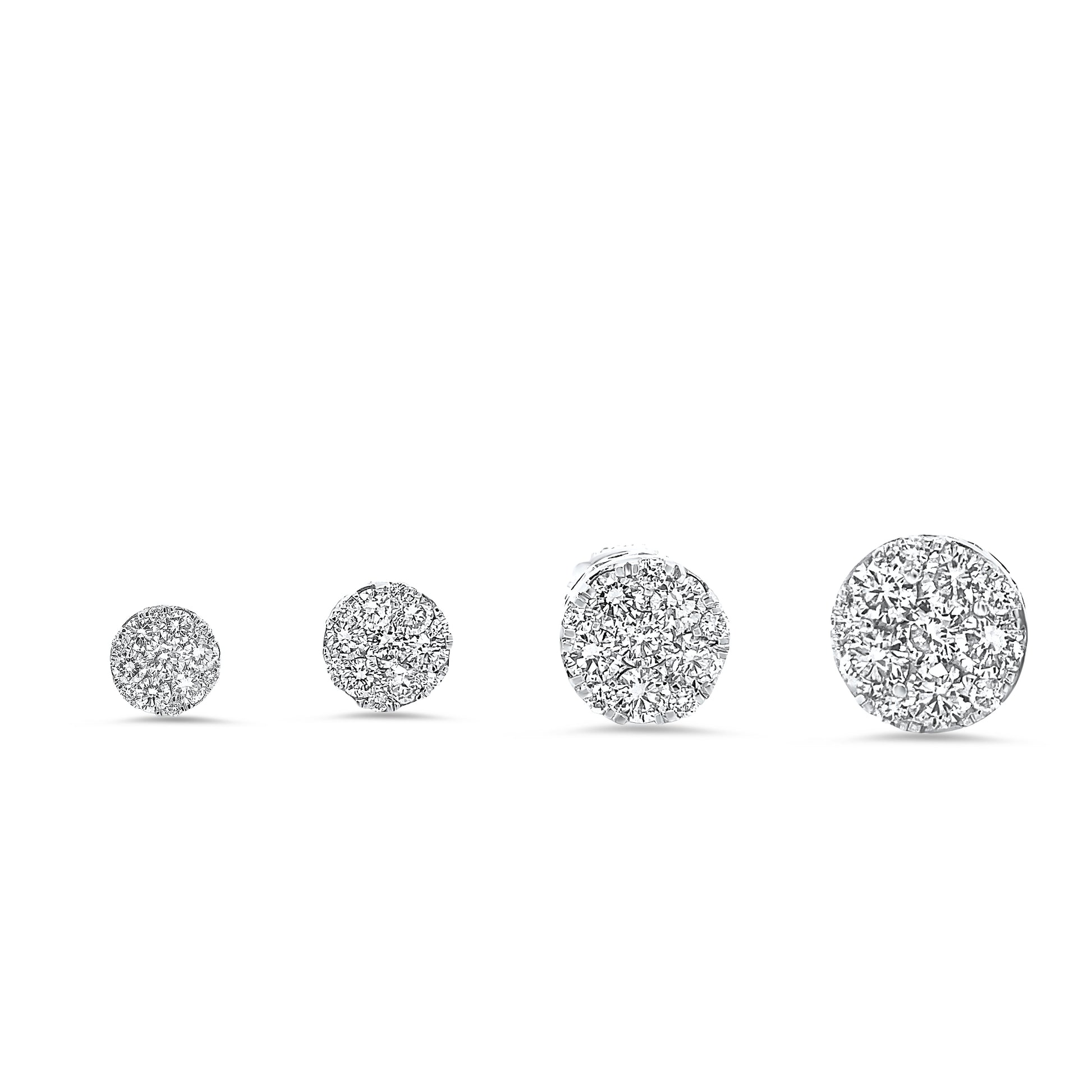 These beautiful cluster diamond earrings are based on solid 14K gold. Elegantly designed, these earrings are finely detailed with various round-cut diamonds, resulting in a beautiful clustered look. Secured with a screw back, these earrings are unique, durable, secure, and stylish