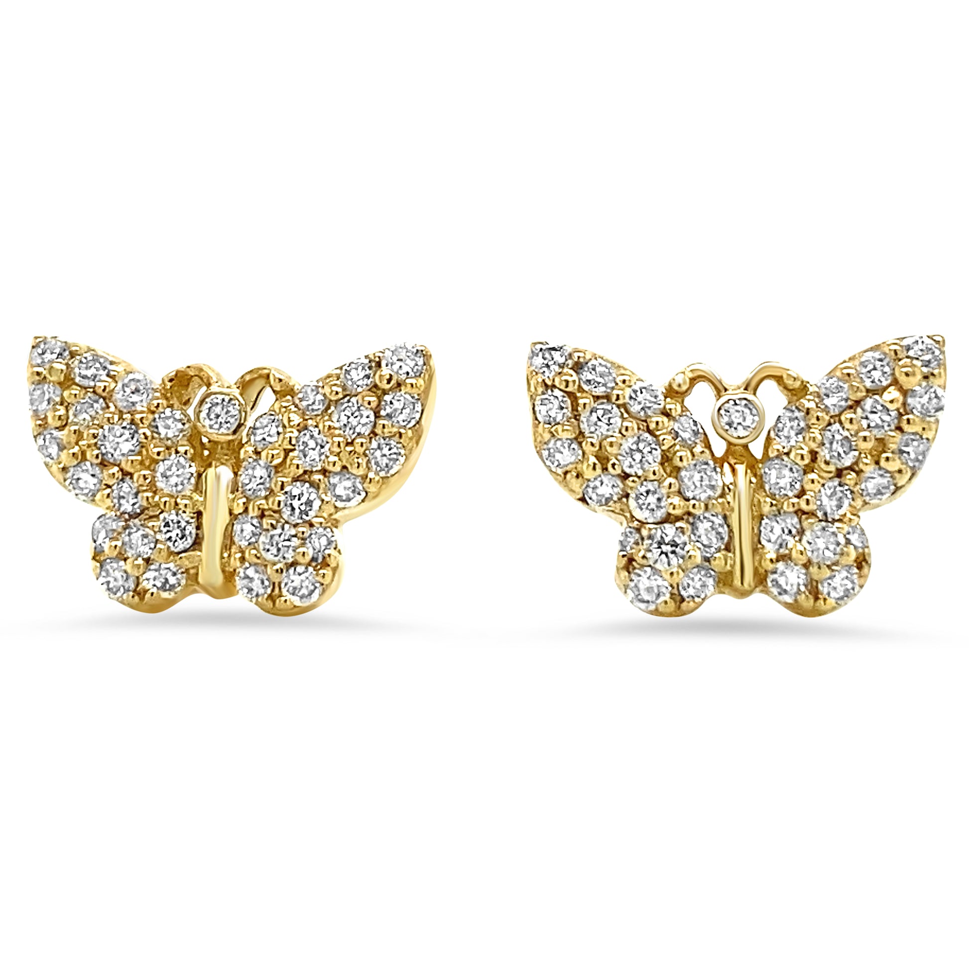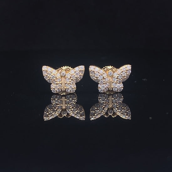 Newly designed butterfly earrings!!These 14K gold and diamond earrings are elegant and subtle. Beautifully designed, these earrings are finished with 0.50 and 0.75 carat in high clarity diamonds.