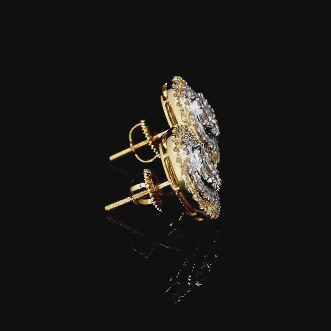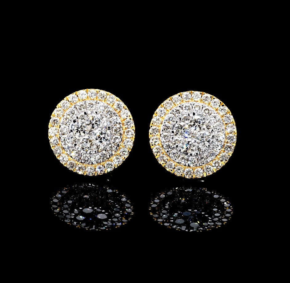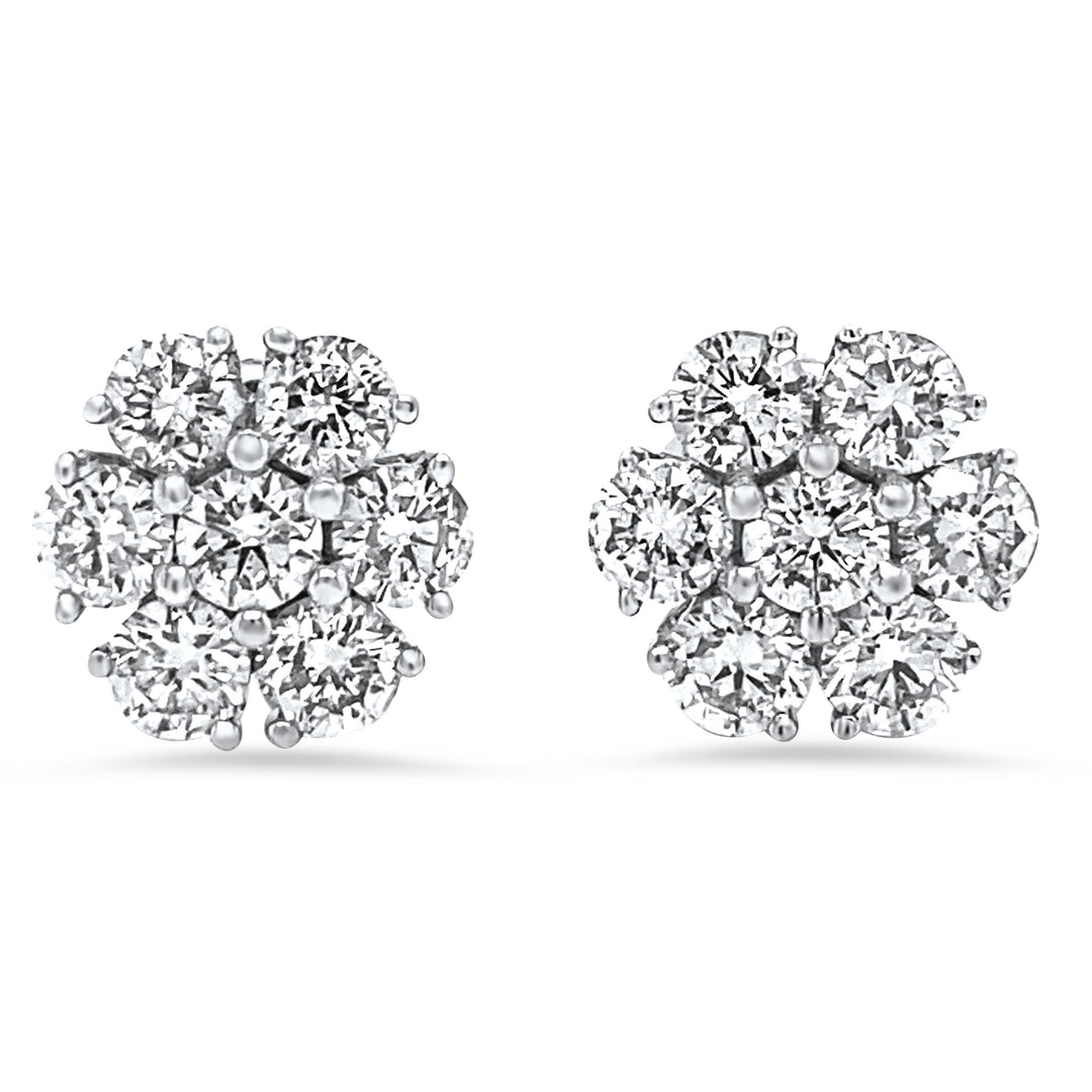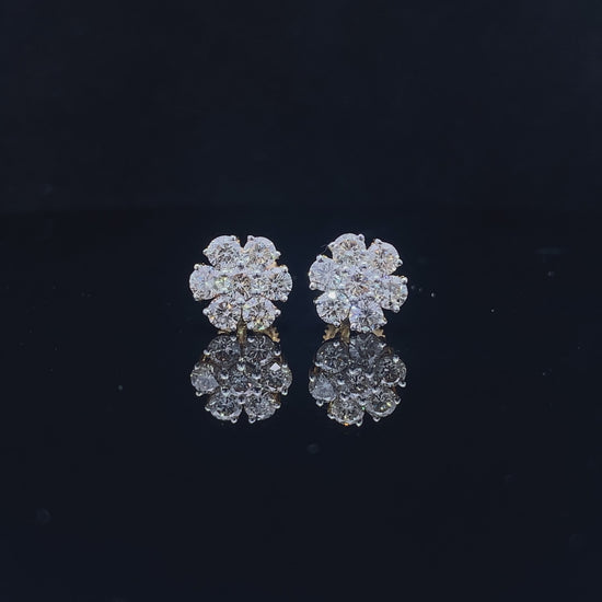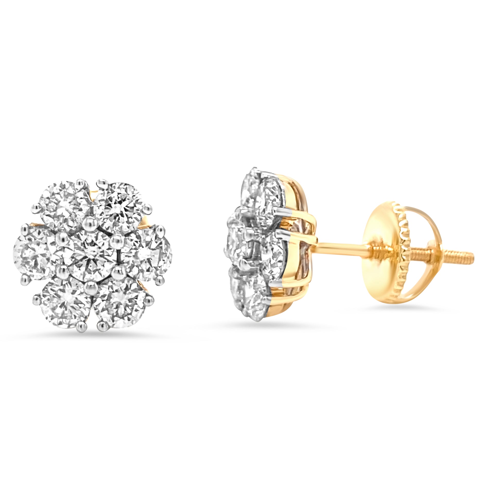 These flower set earrings are intricately set with 1.80 carats in diamonds. They can also be made available in 14K white and rose gold.