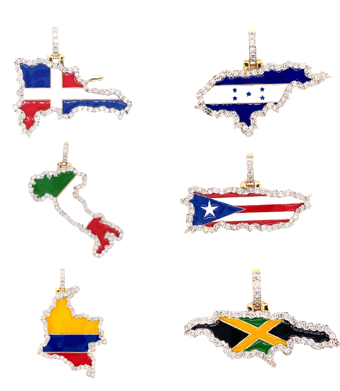 These diamond pendants come in different nationalities! Custom made with enamel, 14K solid gold, and VS1 clarity diamonds, these diamond pendants make a great addition to your jewelry collection, and are a great representation of your nationality.