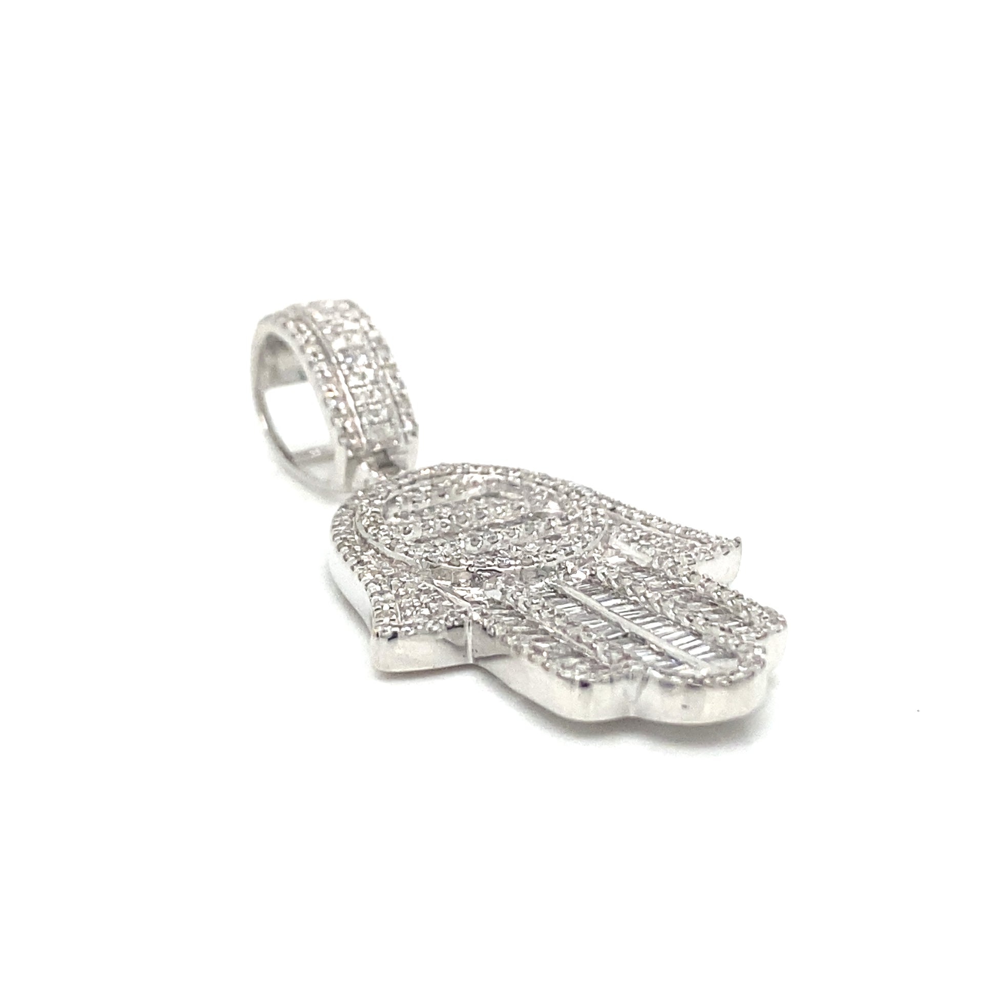 A revered symbol of peace and protection, the hamsa is a beautiful talisman to adorn. This small charm holds value with 14K white gold and 1.5 CTW in diamonds.