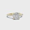 This enchanting ring beautifully blends classic brilliance with whimsical, nature-inspired details. A magnificent round brilliant-cut lab diamond sits at the center, radiating with unmatched fire and sparkle, while a secret hidden halo beneath adds a personal touch of light from the profile.
