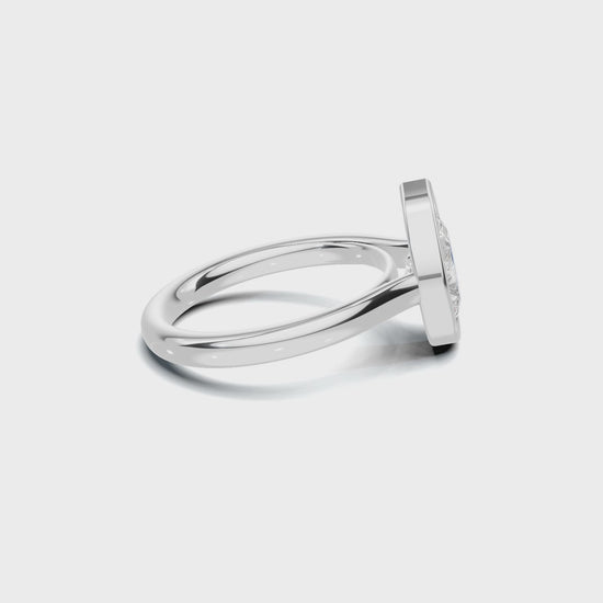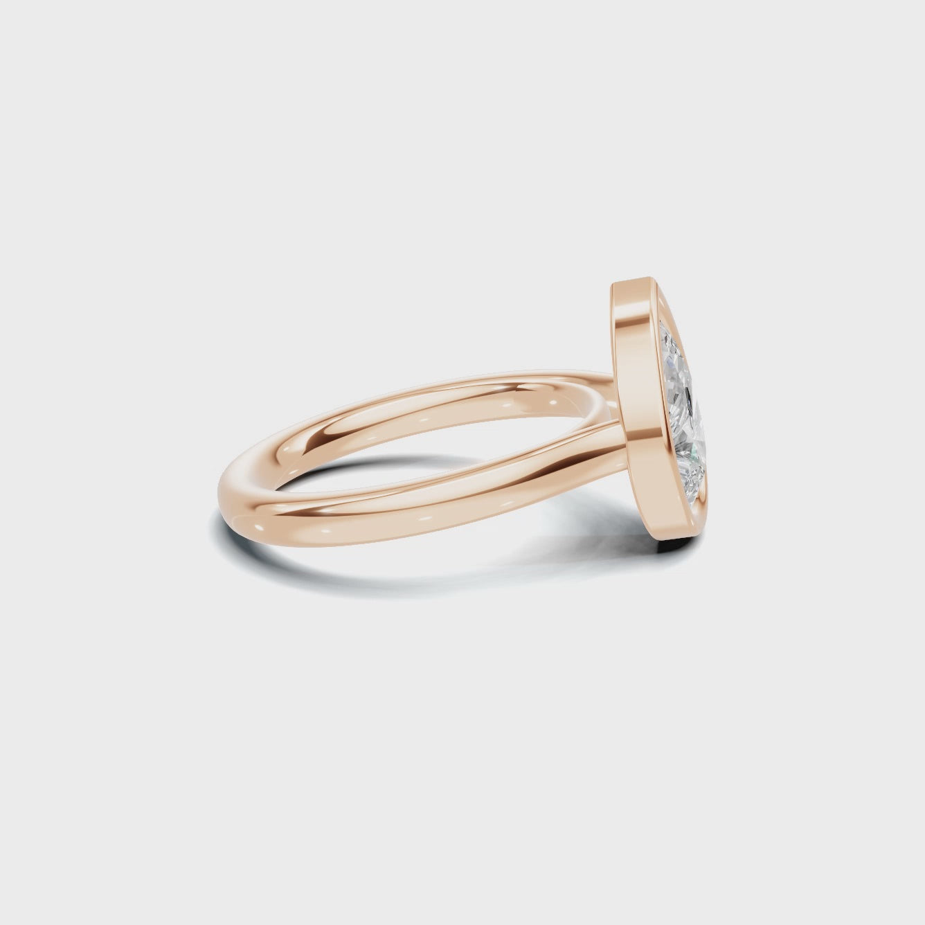 A statement of pure sophistication, this engagement ring redefines modern elegance. At its heart, a magnificent 2-carat pear-shaped lab diamond is captured in a sleek, protective bezel setting. The teardrop of joy silhouette, known for symbolizing romance and empowerment, radiates with exceptional F-color and VS2 clarity, ensuring a breathtaking sparkle from every angle.