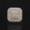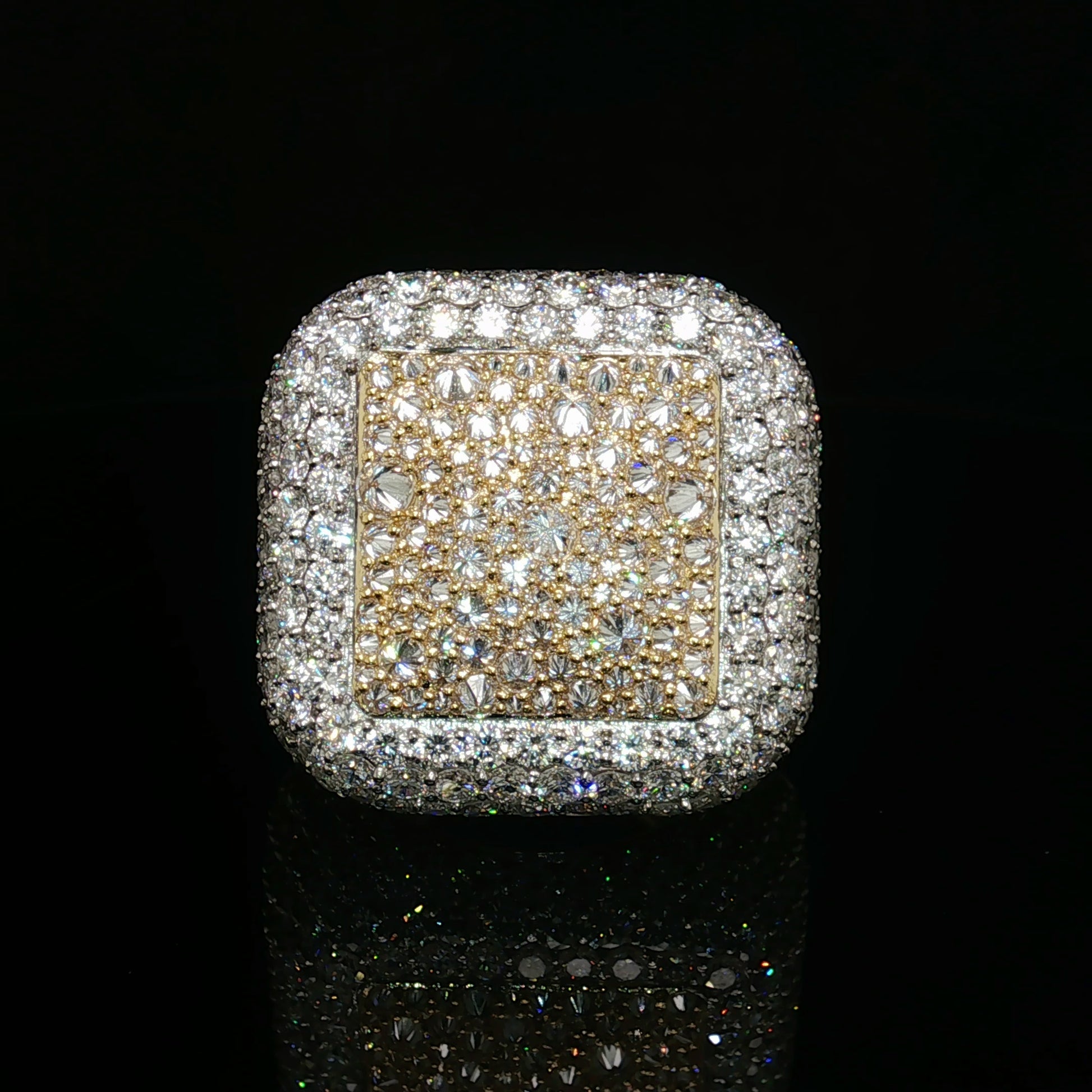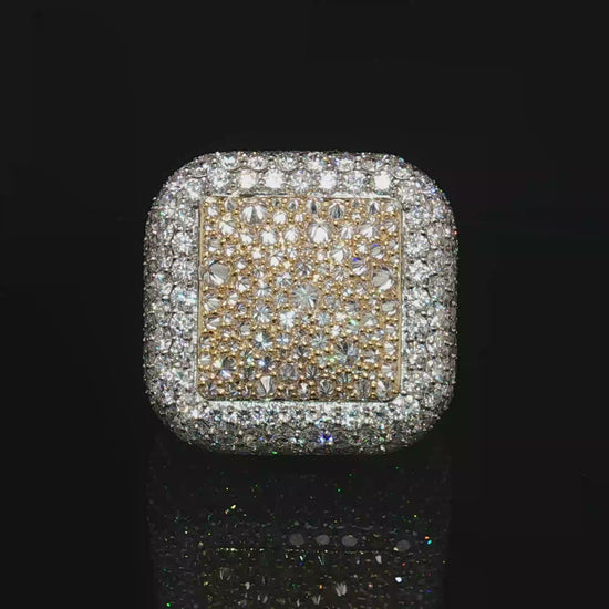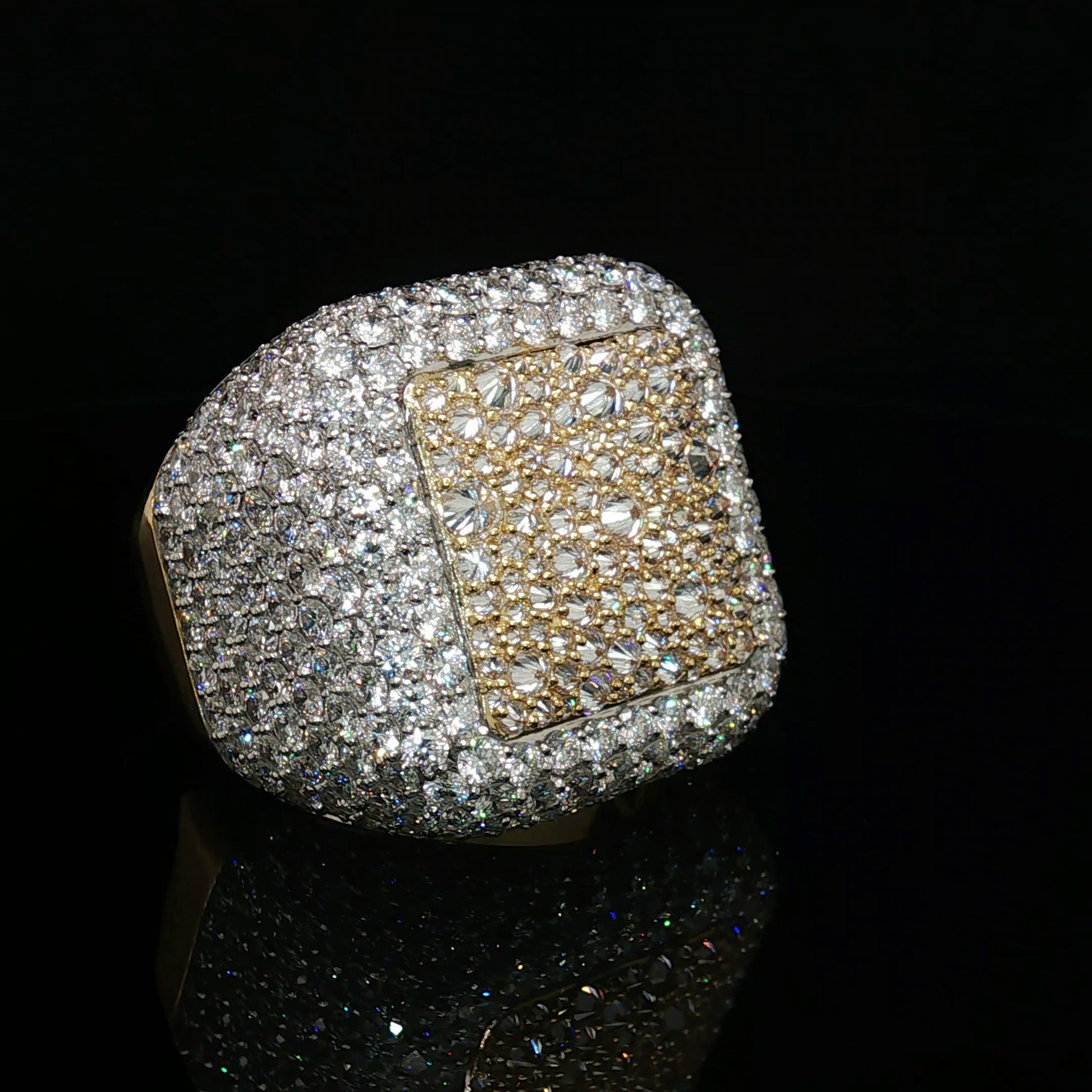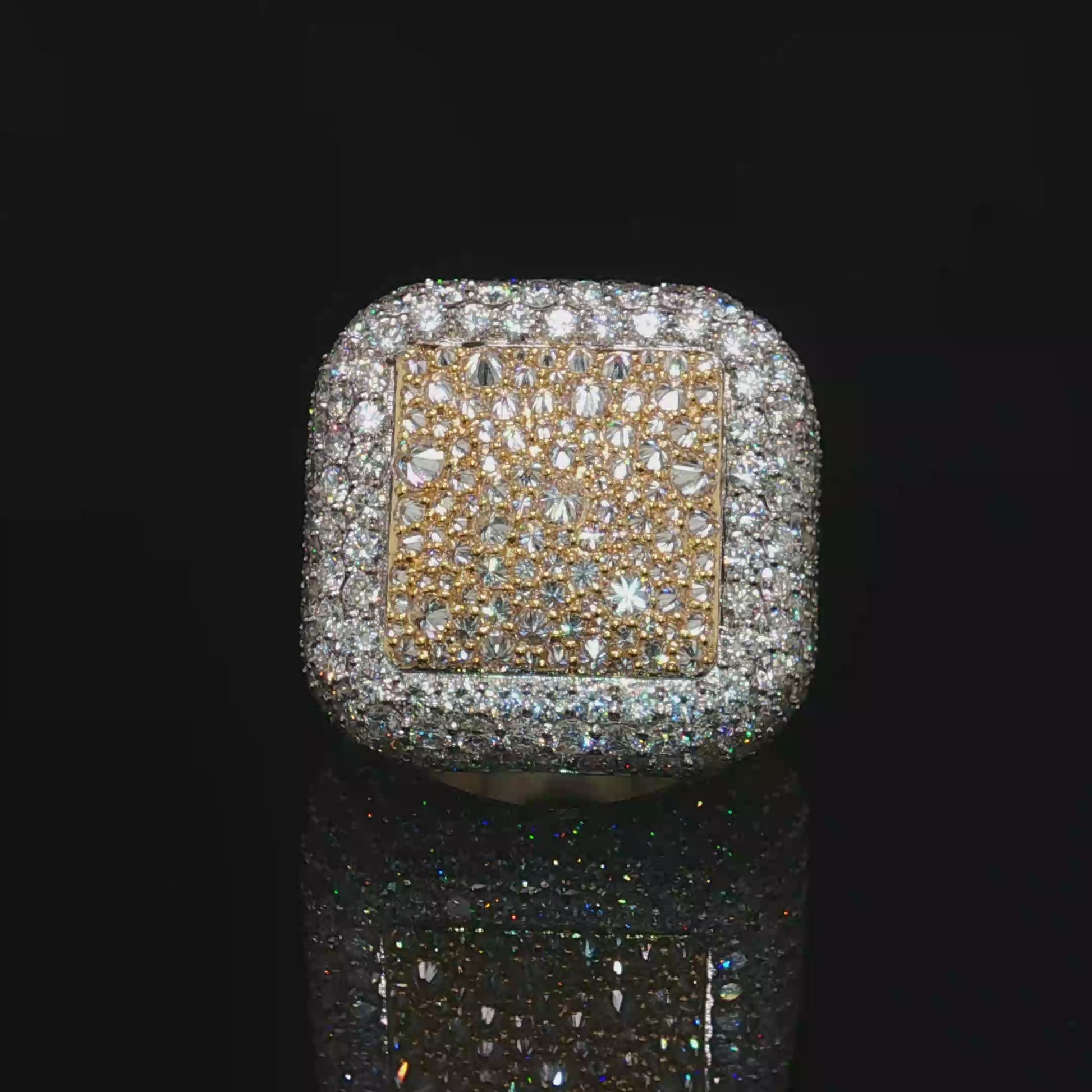We are changing the game with this one. This ring features inverted hand set diamond at its center, for a unique and bold new look. The sides are all pave, so the ring looks completly flooded with diamonds.