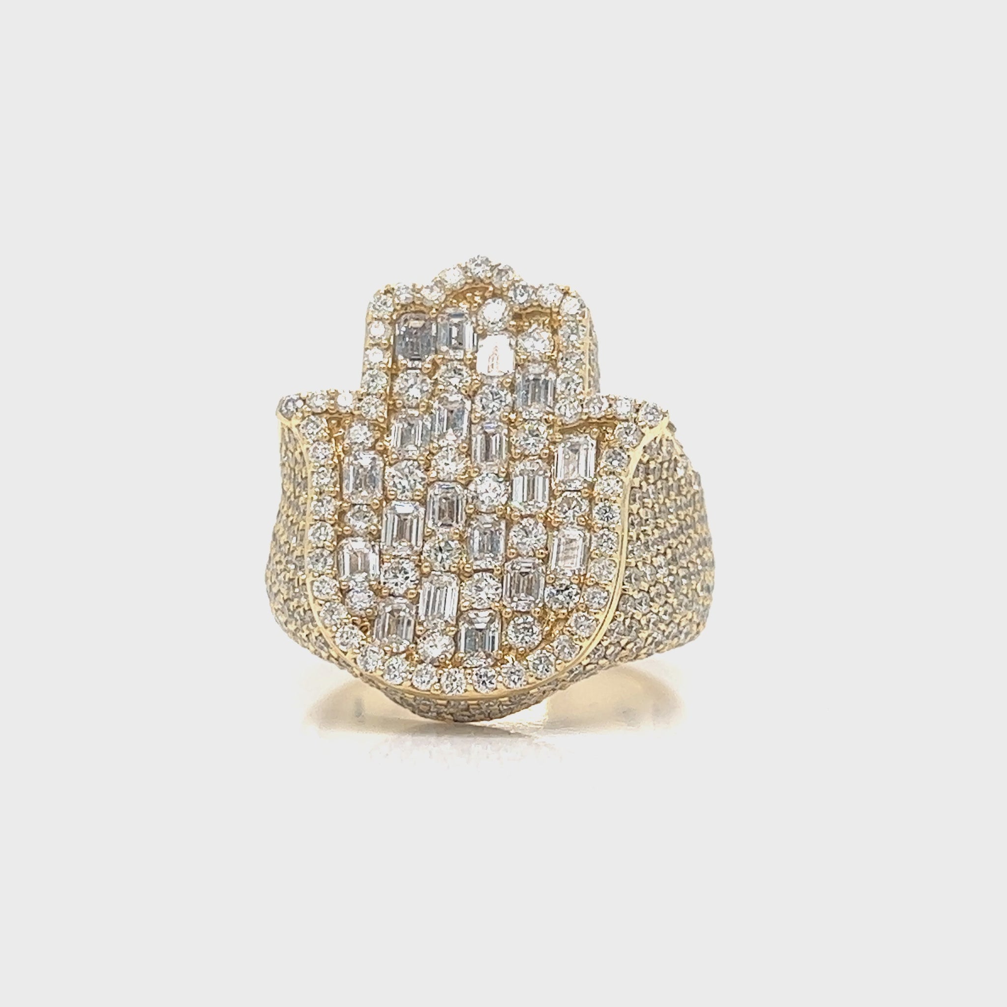 Indulge in divine elegance with our extraordinary Hamsah diamond ring; crafted in radiant 14K gold and adorned with 6CTW of diamonds. Embracing the ancient symbol of protection and blessings, each facet of this exquisite piece exudes timeless grace.