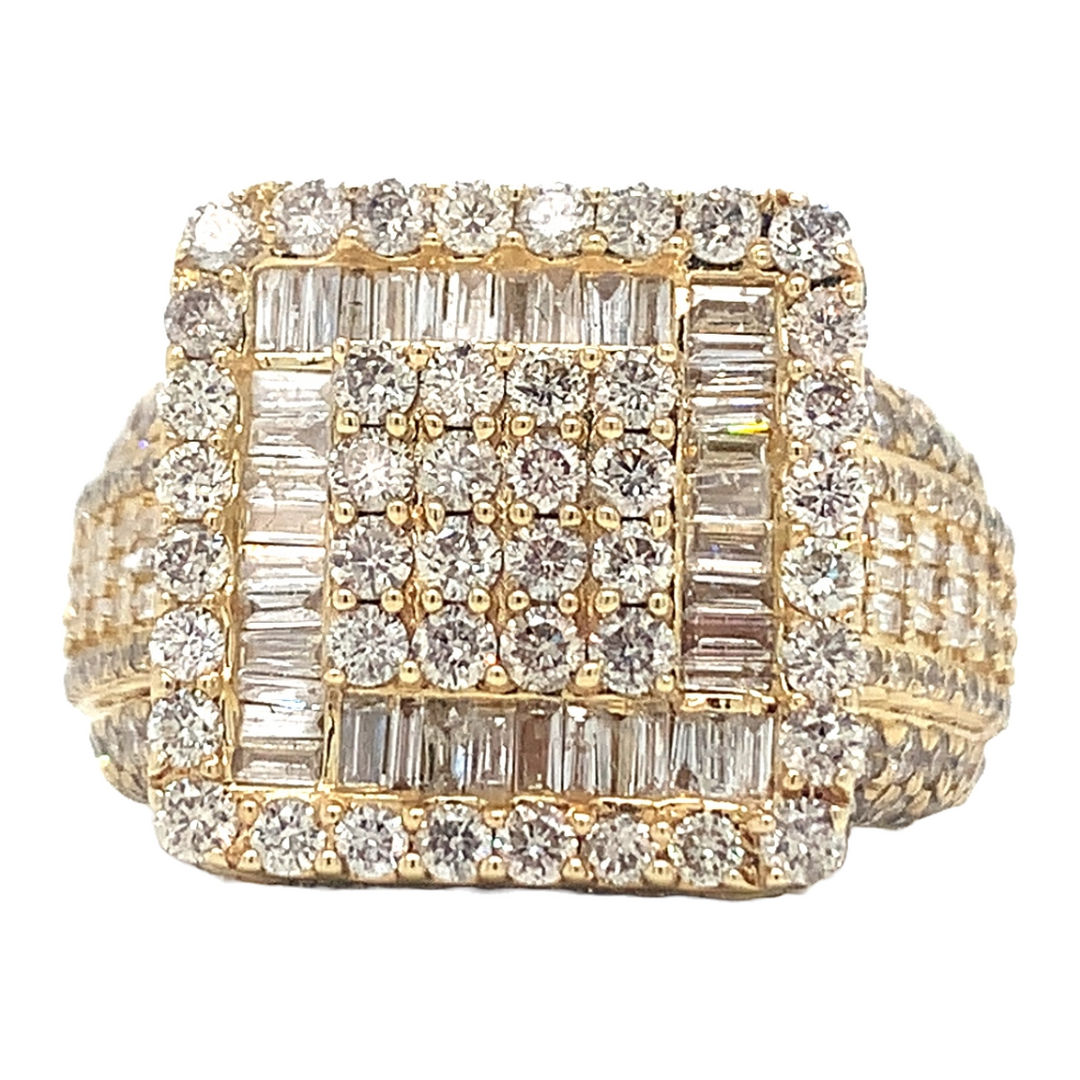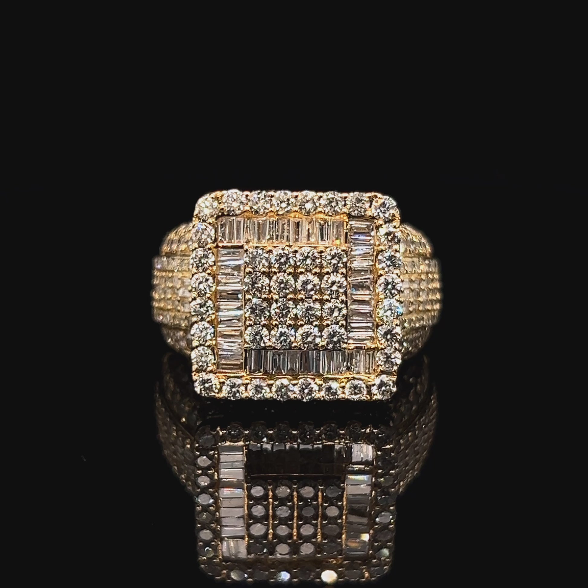 The design of this ring is a very intriguing one composed of both baguette and round diamonds. A display of quality and design all around.
