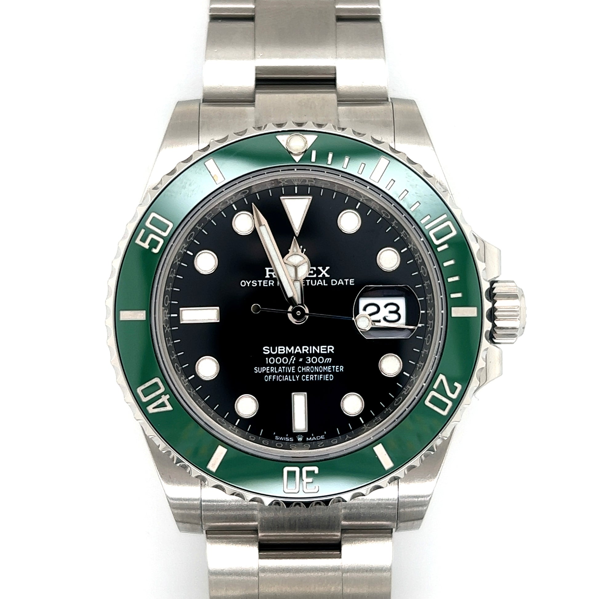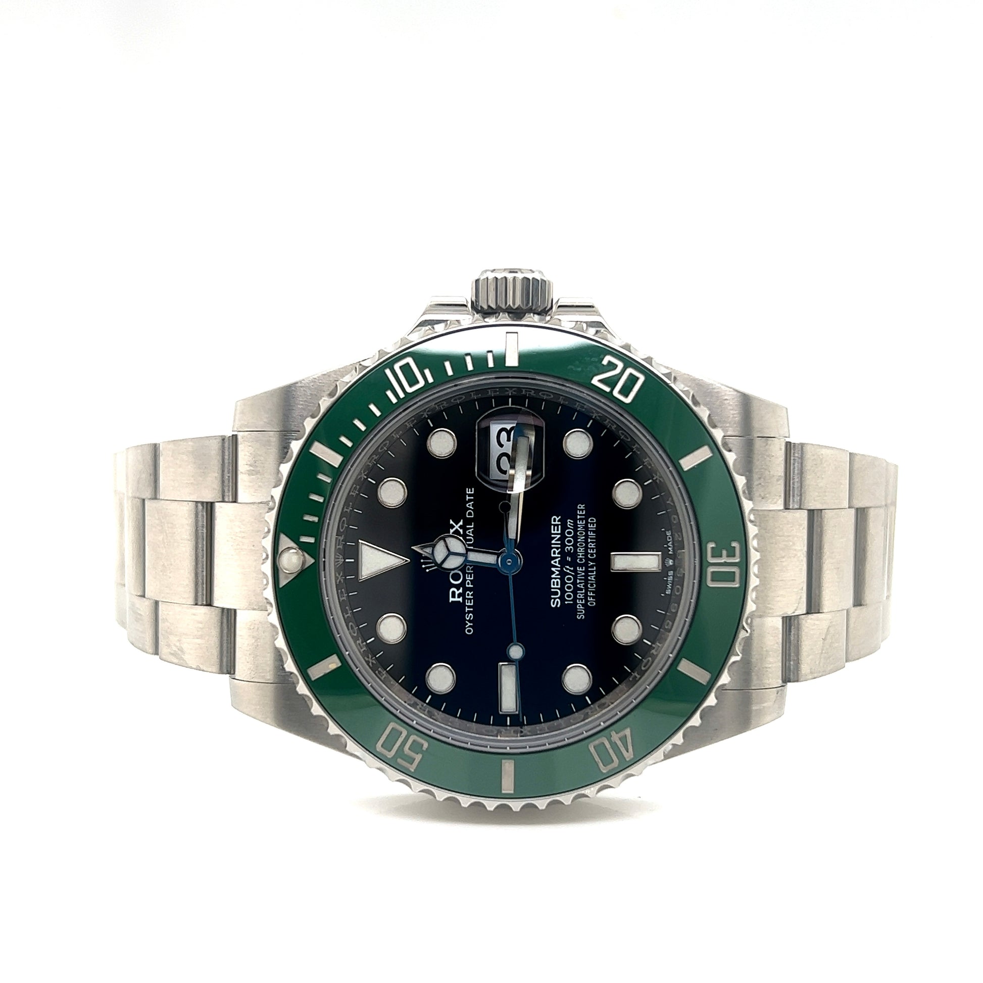Brand new Rolex 41MM Submariner with a green “Starbucks” dial, perfect for any occasion. Branding a beautiful black dial and stainless steel Oyster Bracelet, this watch is a perfect blend of style and elegance.