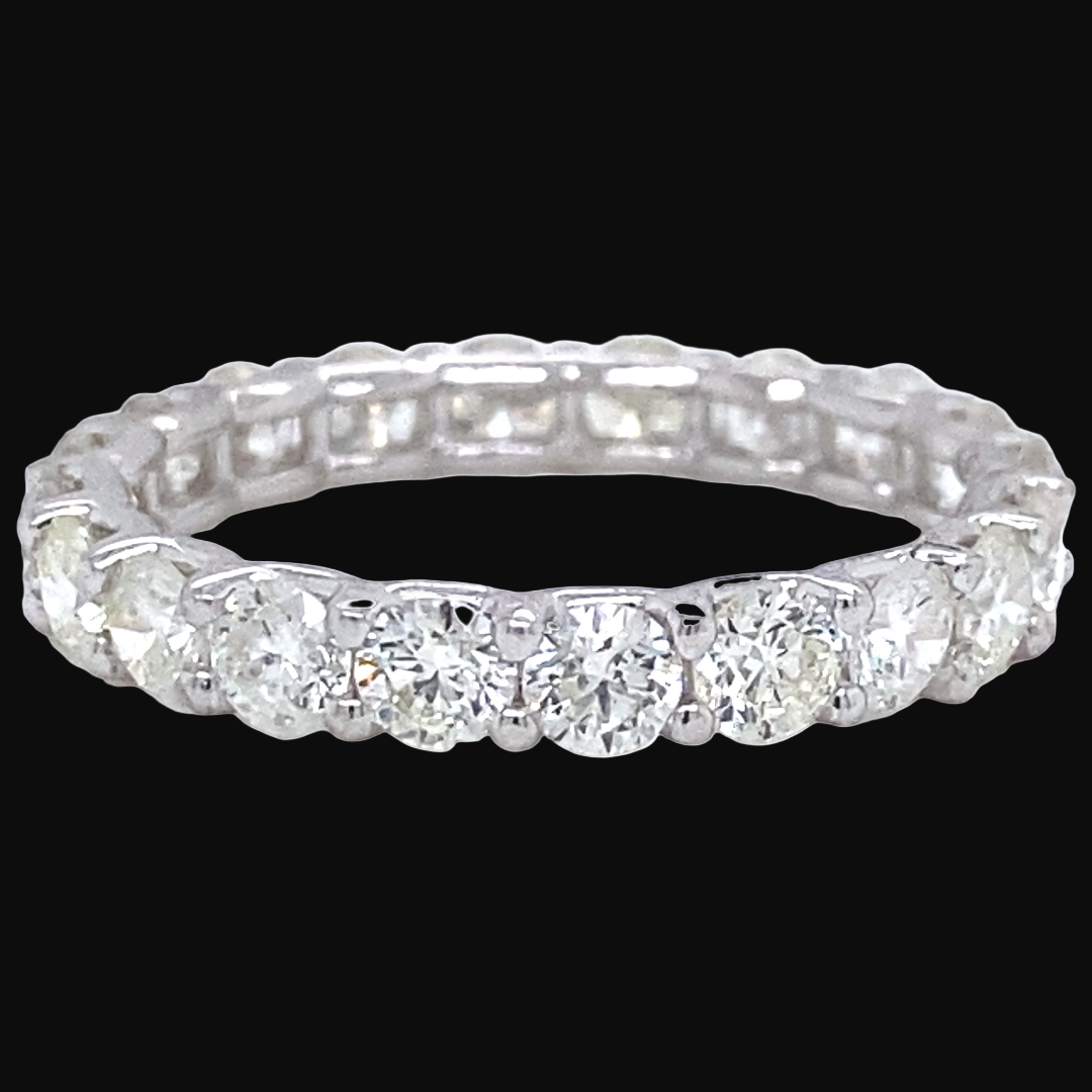 Breathtaking natural diamonds in an endless row of 14K gold. Our eternity bands are crafted to perfection with both style and your comfort in mind. Each diamond is hand selected to ensure a constant brilliant shine throughout. Our rings have a unique low setting that makes our eternity rings more comfortable than our competitors.