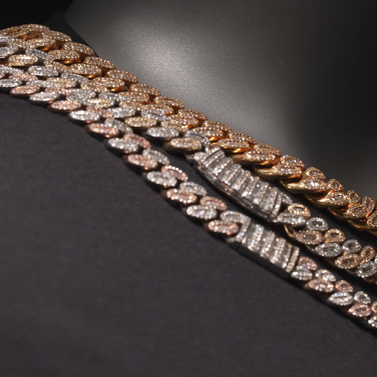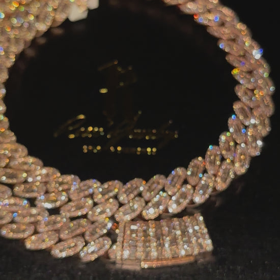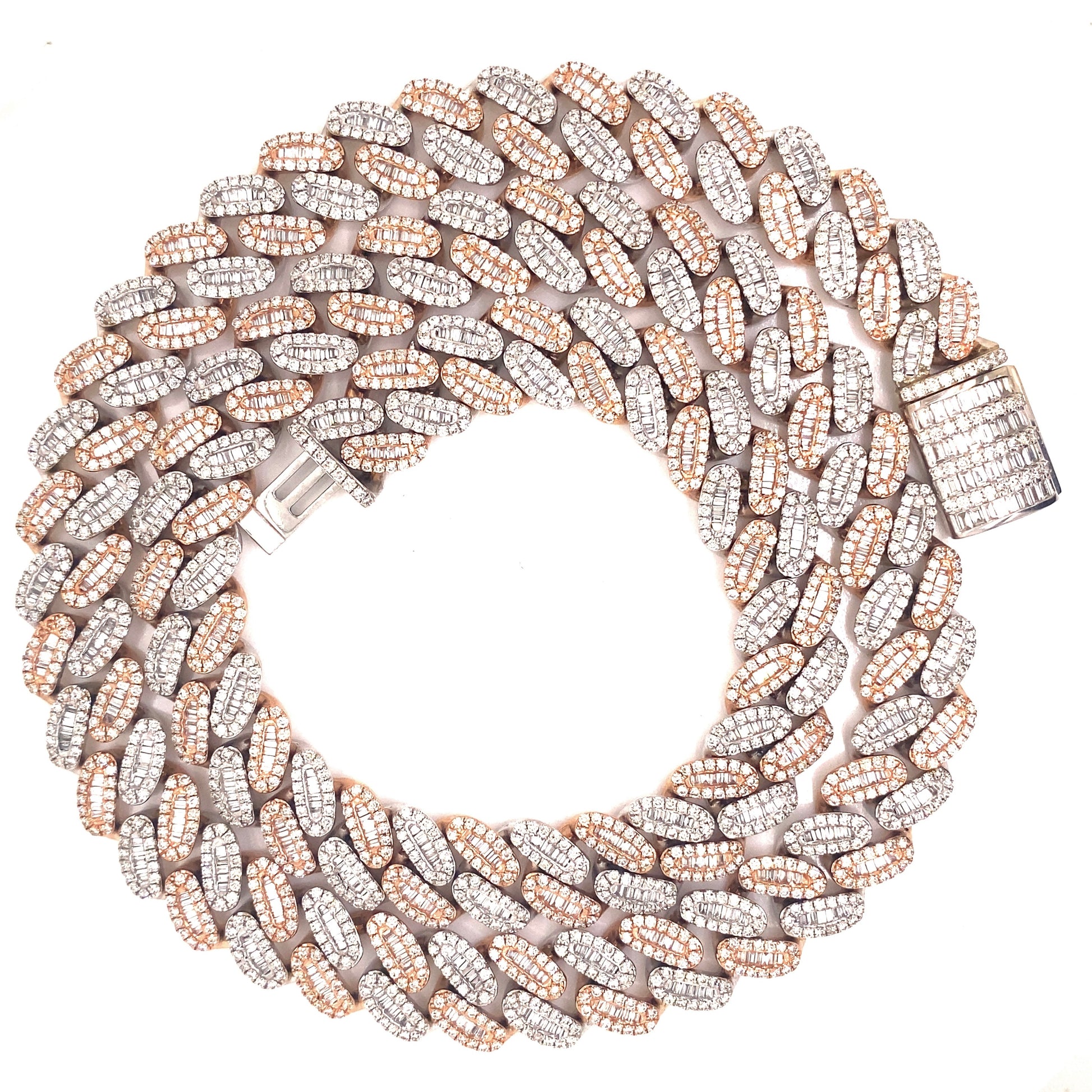 Indulge in the timeless beauty and impeccable craftsmanship of our 12.5MM Baguette Diamond Cuban Chain. Elevate your style and make a lasting impression with this exquisite piece.