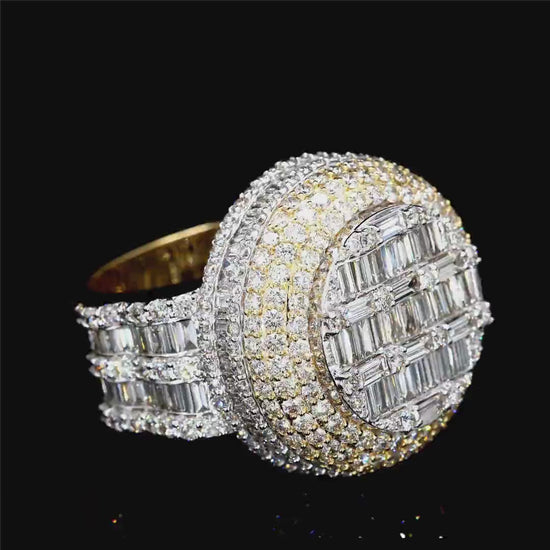 This is the Bosses ring. High clarity natural VS1 clarity diamonds on top of solid gold. features 8 carats of both baguette and round brilliant diamonds.